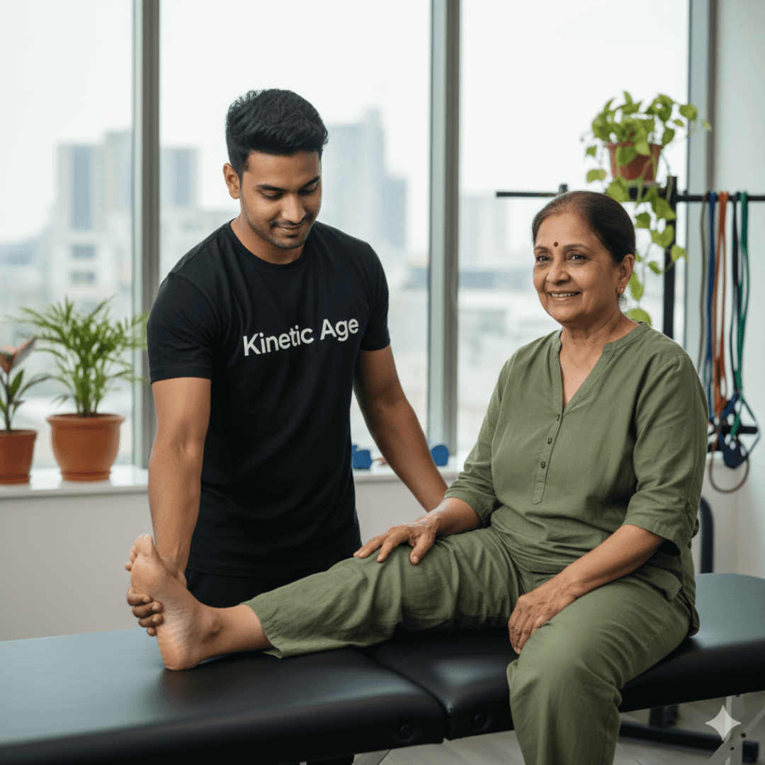 Help your parents stay active, independent, and pain-free with Kinetic Age’s doctor-led physiotherapy, strength training, nutrition, and mental-wellness programs delivered safely at home.