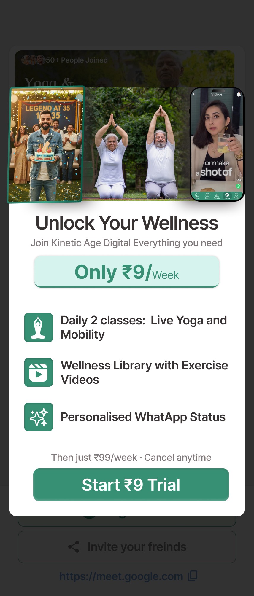 After payment, access yoga sessions, personalised status and the wellness library instantly.