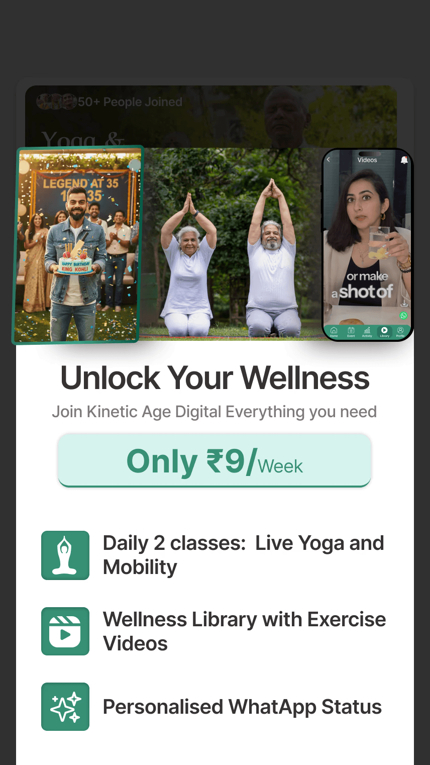Access yoga classes, status tools, and wellness content all in one affordable plan.